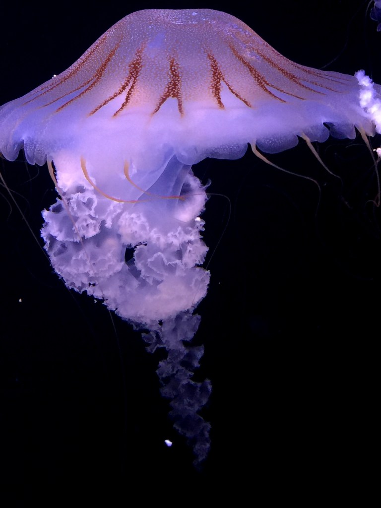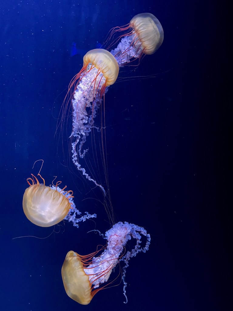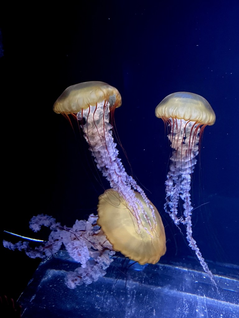 La collection de méduses est bien plus urticante que les requins qui occupent un espace assez grand pour que ne puisse que les entrevoir.