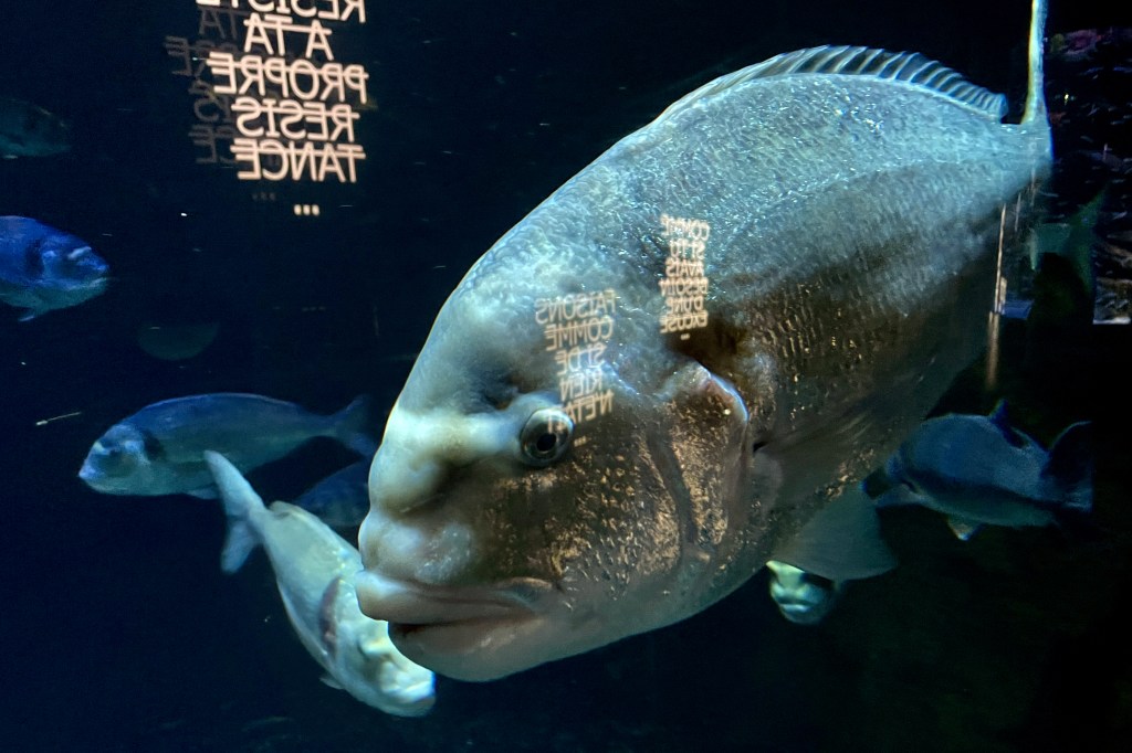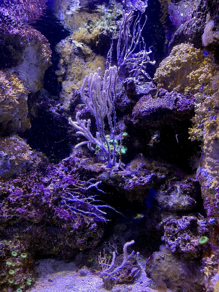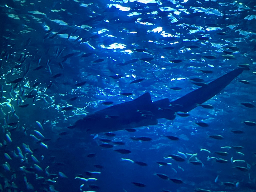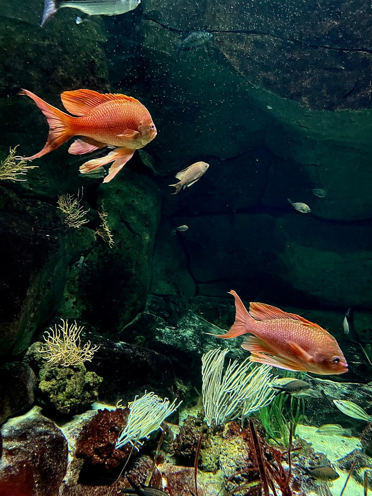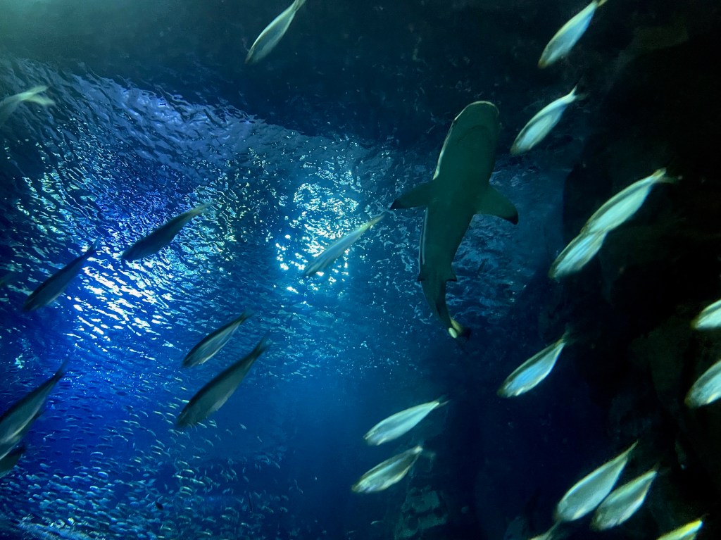 Il y fait très sombre et les murs sont percés de grandes vitrines qui permettent d’admirer des poissons et des animaux marins de toutes les couleurs. Les poissons font toujours la gueule et l’endroit est bondé de gosses surexcités.