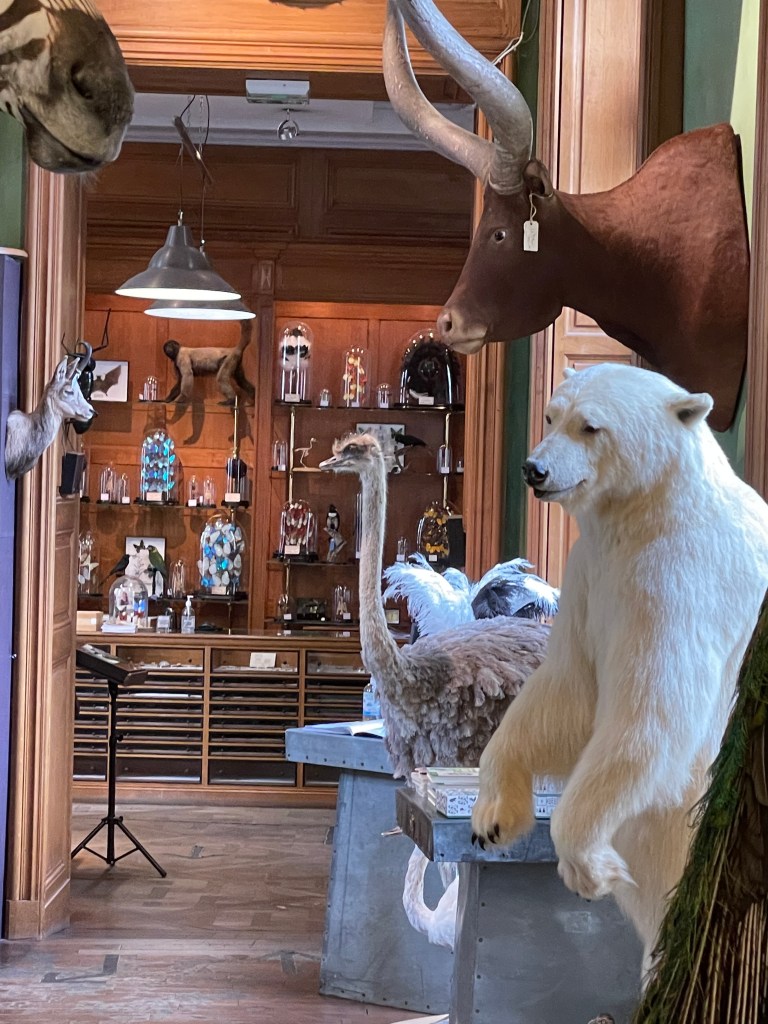 Une mention spéciale pour l’extraordinaire magasin Deyrolle qui propose un incroyable bestiaire d’animaux empaillés pour ceux qui hésitent entre un ours polaire, une licorne ou un taureau pour décorer leur antichambre. L’entrée ne laisse rien deviner, il faut monter au premier étage … C’est une sorte de métaphore de ce quartier qui répugne à s’exposer.