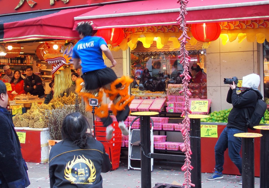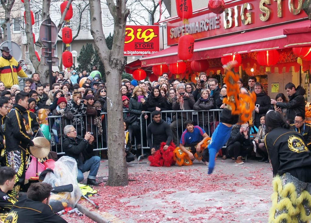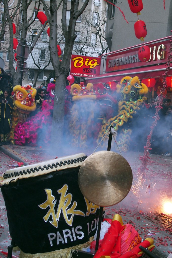 Avant que son succès le force à se déplacer sur les Champs Éklysées, que le COVID l’empêche d’avoir lieu et que les Vietnamiens s’emparent du XIII§ème arrondissement, le Nouvel An chinois avait lieu chaque année dans un grand déluge de pétards, de couleurs et de musique tout le long de l’avenue d’Ivry, dans un défilé spectaculaire eyt des dizaines de dragons propitiatoires.