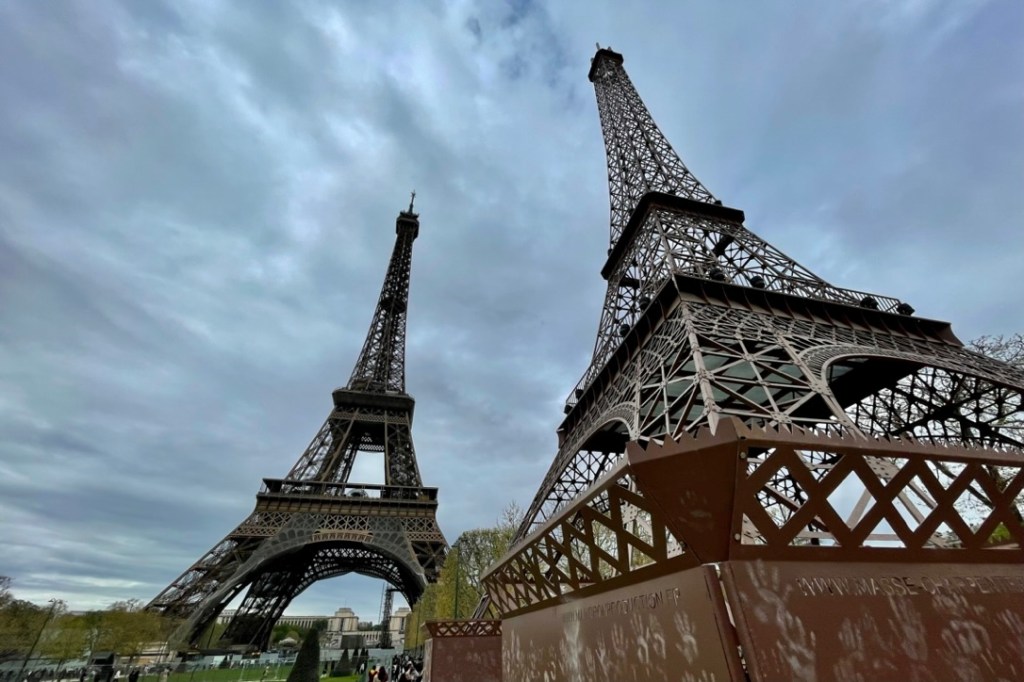 La petite Eiffela se porte bien, sous le regard altier de sa centenaire de mère.